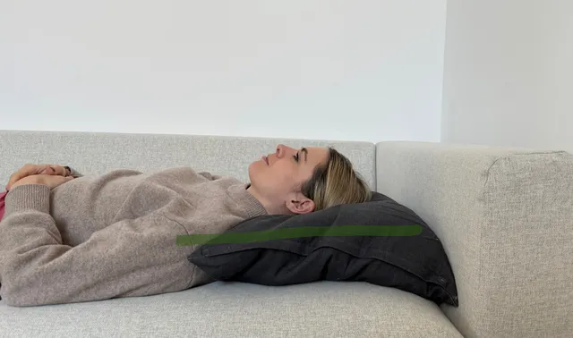 Ein flaches Kissen oder ganz ohne Kissen kann helfen, den Nacken in einer neutralen Position zu halten. Wenn du das Gefühl hast, ein Kissen ist notwendig, sollte es nur eine geringe Höhe haben, um den Nacken nicht zu überdehnen. Am Besten ist es, den Nacken in einer geraden Linie mit der Wirbelsäule zu halten, um Verspannungen zu vermeiden.